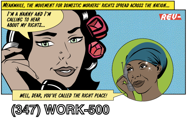 In risposta alle richieste dei gruppi di lavoratori domestici da costa a costa, all’inizio del 2014, REV ha condotto una collaborazione che include nuovi partner come The National Domestic Workers Alliance e NuLawLab nella creazione di una hotline nazionale per bambinaia truccata il cui contenuto è stato creato con i lavoratori negli Stati Uniti attraverso uno studio di design mobile e un laboratorio audio soprannominato NannyVan. La hotline nazionale, opportunamente chiamata “L’app NannyVan” – ma ancora accessibile da qualsiasi tipo di telefono – presenta nuove funzionalità come la possibilità di iscriversi a suggerimenti settimanali via SMS su argomenti come la legge, la storia dei lavoratori domestici, la salute e la sicurezza e il movimento crescente.