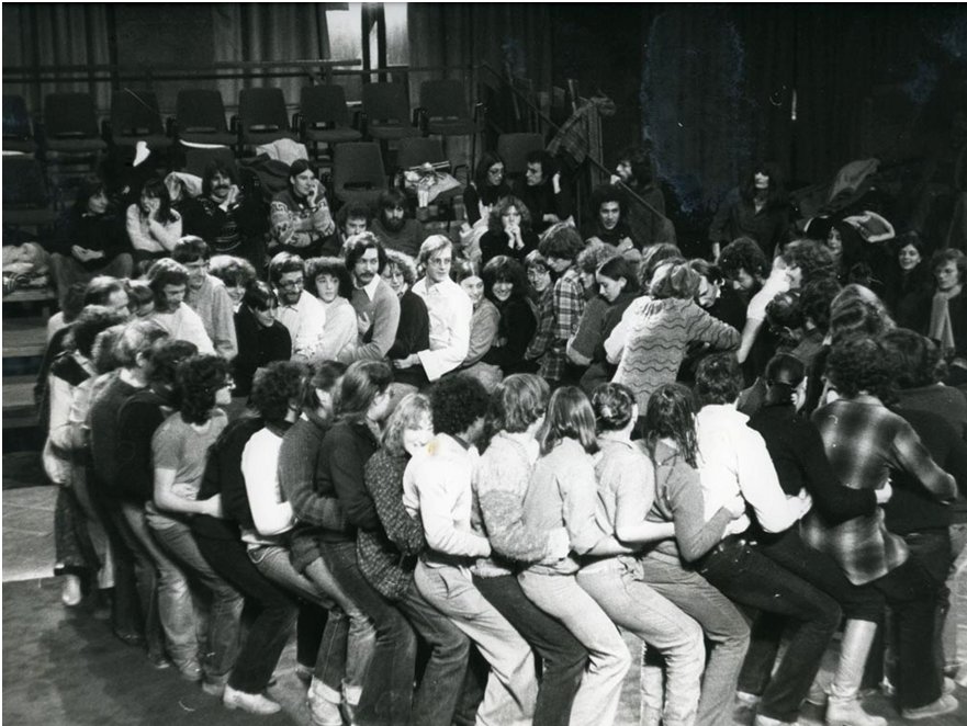 Il teatro-immagine è uno strumento incredibilmente accessibile da utilizzare in corsi di formazione, sviluppo di strategie e azioni dirette. Giochi teatrali come quello nella foto sopra, del Theatre of the Oppressed a Parigi, 1975, possono aiutare a riscaldare i partecipanti per sfruttare appieno il modulo. Foto di Cedoc-Funarte.